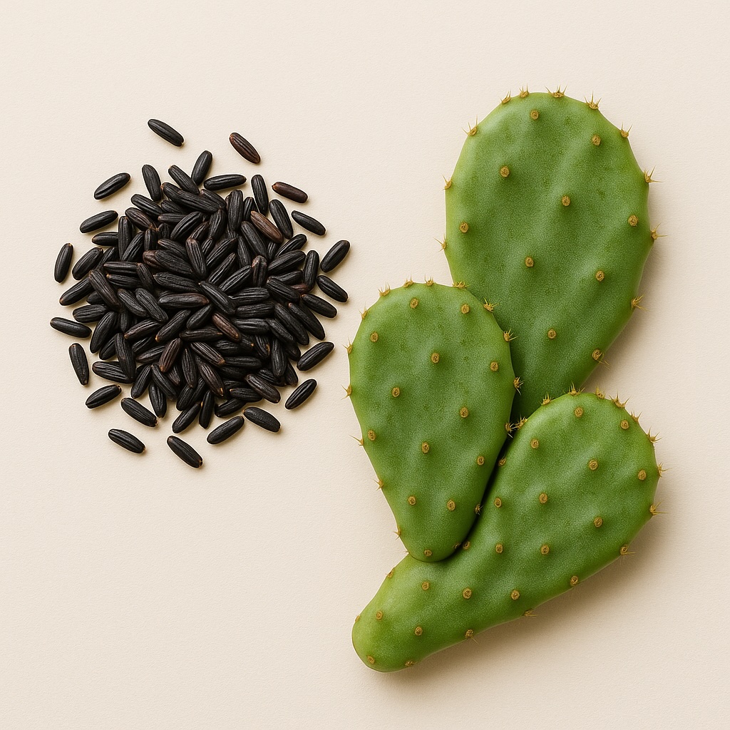 Eine besondere Mischung besonderer Derivate von Schwarzem Reis und Kaktusblüten. Es ist reich an Anthocyanidinen und Flavonoiden.