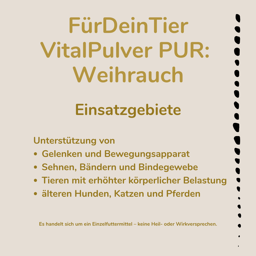 100% Boswellia serrata Extrakt – ein naturreines Einzelfuttermittel für Hunde, Katzen und Pferde, reich an wertvollen Boswelliasäuren.